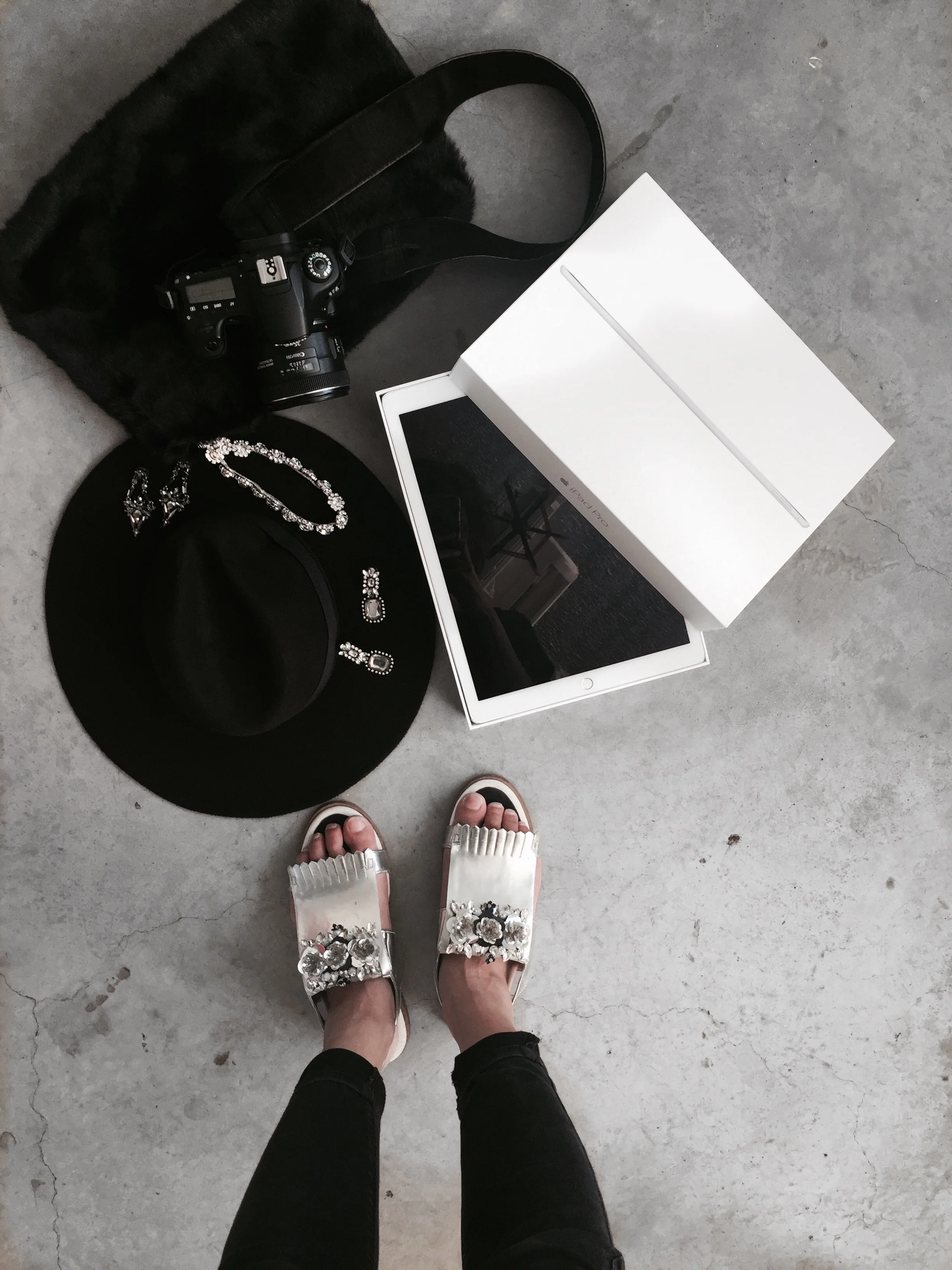 SANDALS - DARLIN JEWELRY // EARRINGS - FLORALPUNK // HAT - UP TO SECONDS // FUR BAG - ZARA