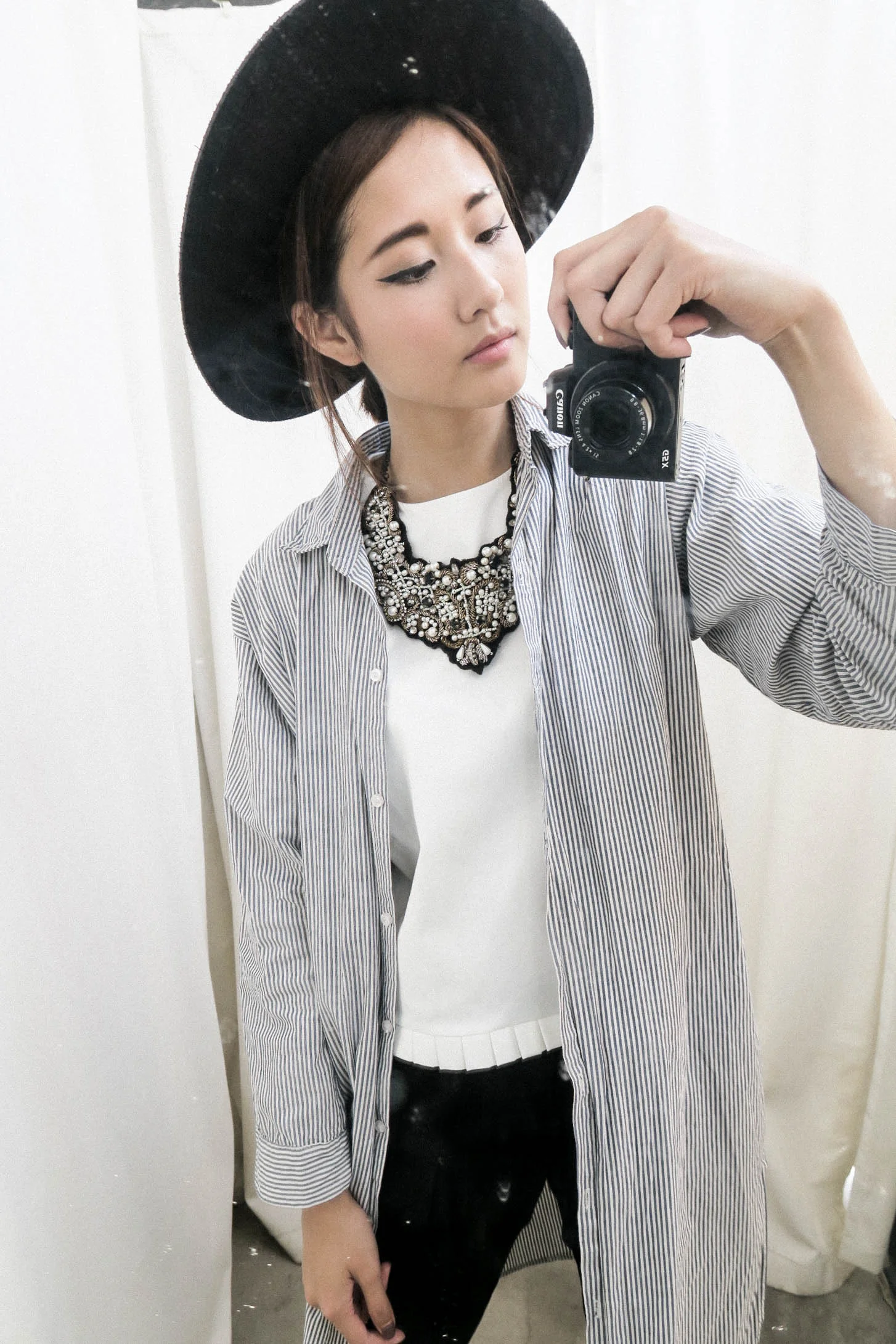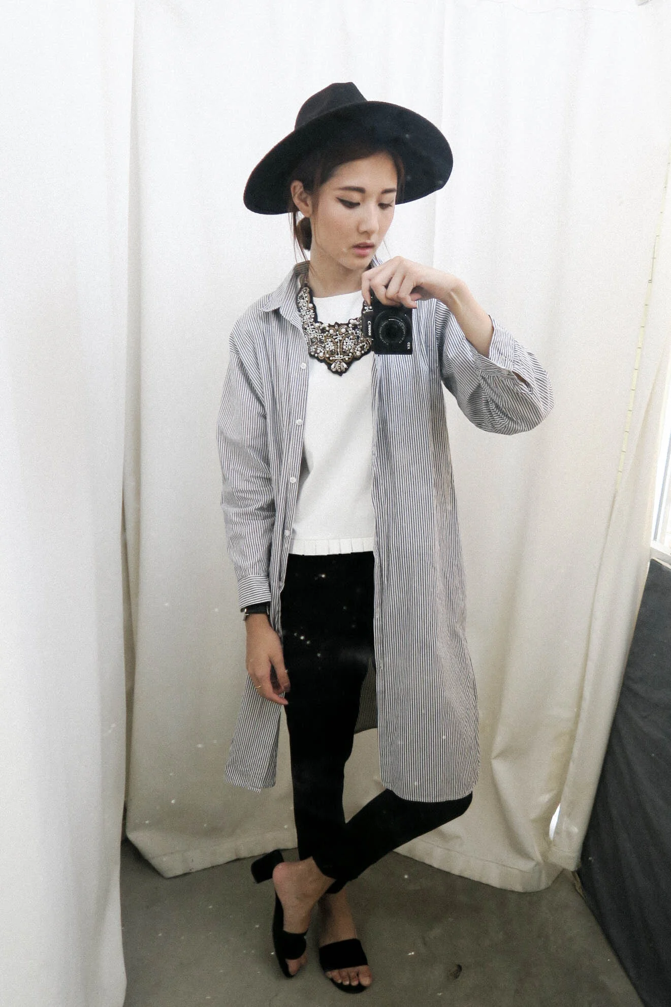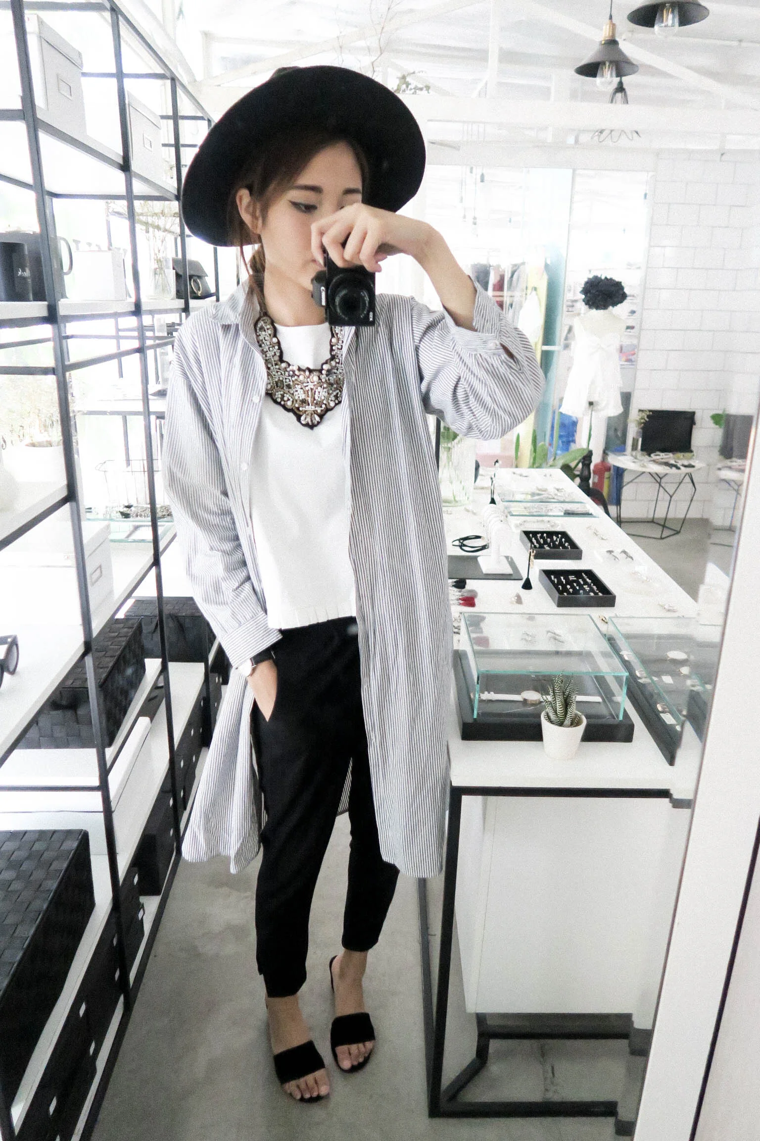 Hat - bought at Up To Seconds / Striped shirt - from Platinum Plaza Bangkok / White Top - Nosbyn (new) / Pants - Wephobia / Slippers - Nosbyn (new)