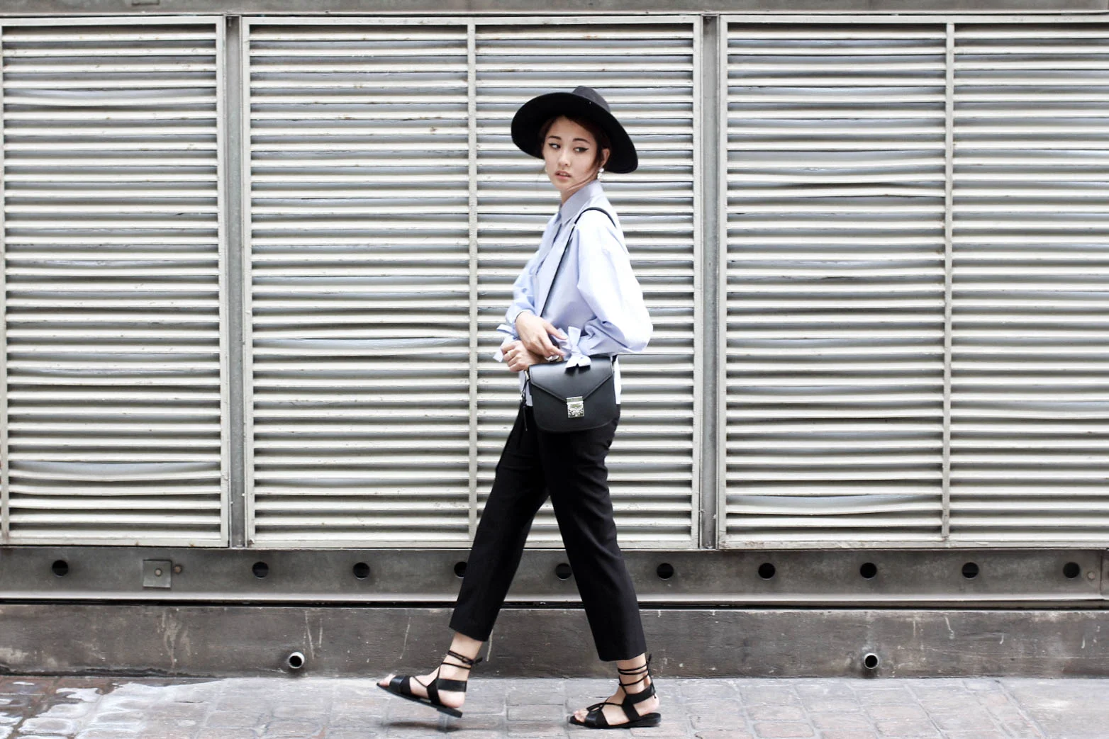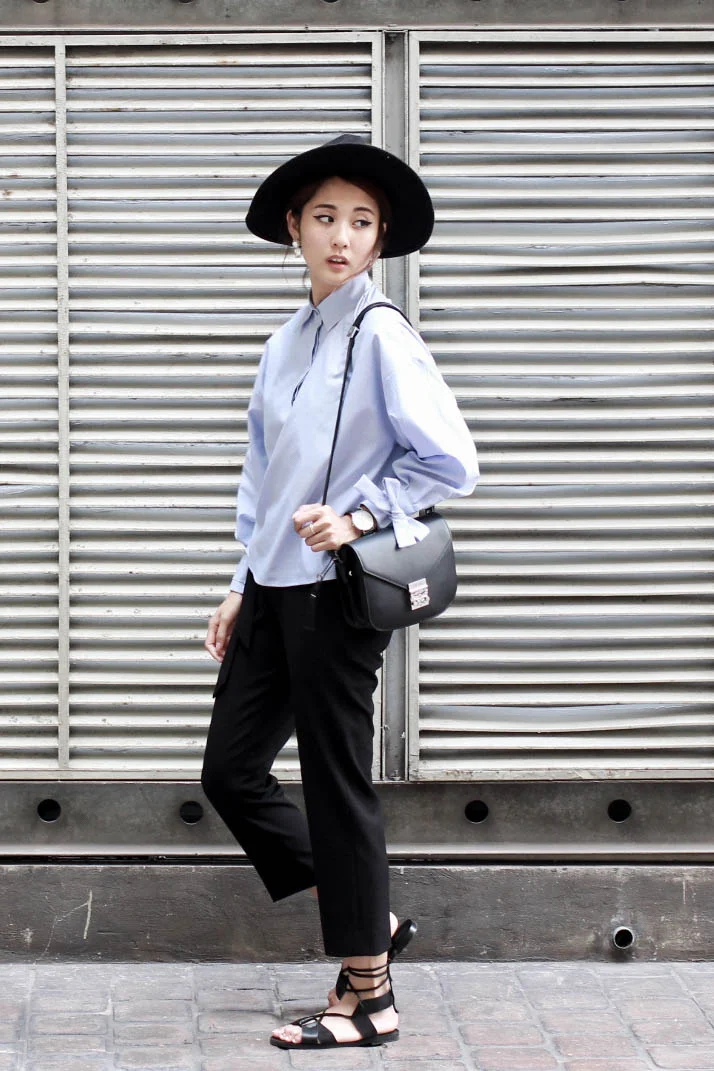 When I first saw this shirt in Wephobia's latest collection, I thought, 'nah this ain't for me'. But then I saw it on Salim and actually it was kind of cute. I wanted to try it, and when Kim asked me to shoot a couple streetstyle photos for Wephobia, it was the perfect occasion. That's why on a Sunday afternoon, the two of us pilgered to the Wephobia store at 26 Nam Ngu Street and I picked two outfits to shoot. The pants run a little short on me. I'm 1,70m and I guess the pants are more for an average Vietnamese girl of 1,65m and below. On those girls the pants will fit perfectly. So yeah, out of the four colours available (black, grey, blue and white), I picked this blue, a colour that always makes me feel a little like an office lady. How do you like this shirt ? I'd probably also wear it with a pair of skinny jeans and boots. I think this shirt would look so much better on me if I styled it for Berlin streets rather than Saigon streets.