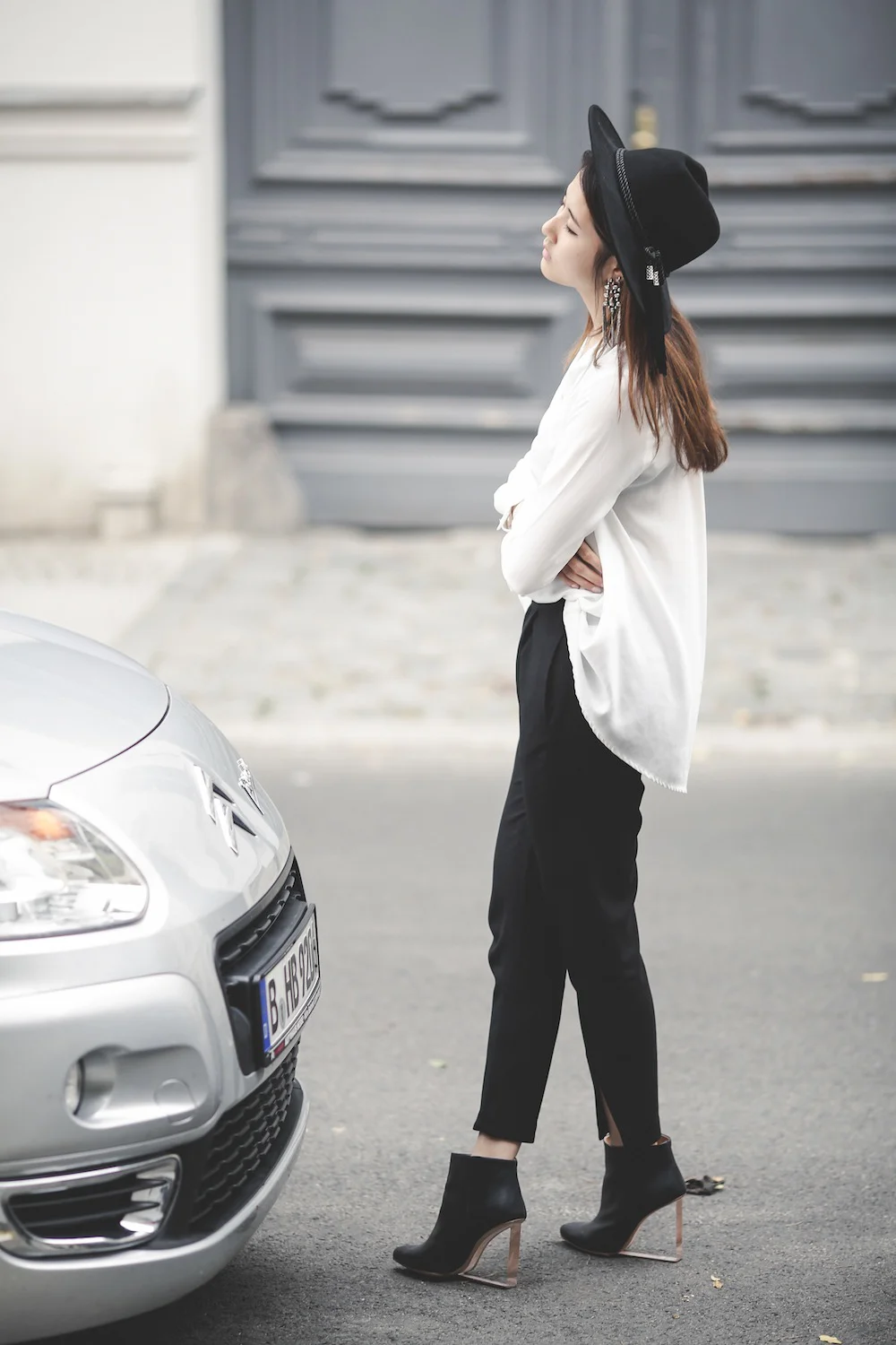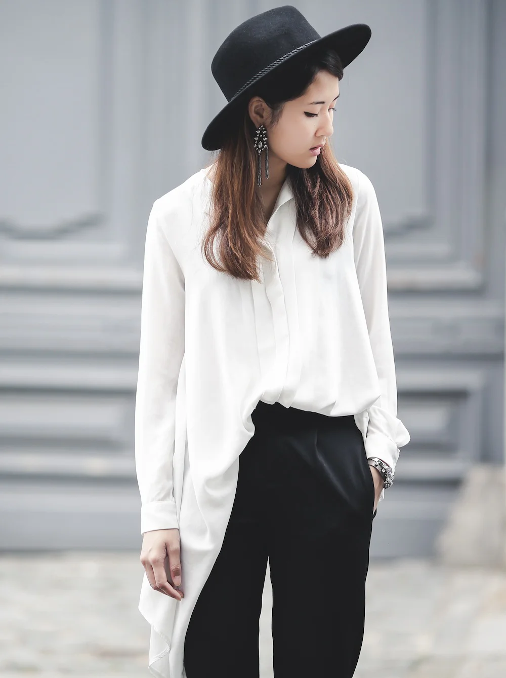What other girls consider as dressing up and what I consider as dressing up usually couldn't be any more different. Other girls would probably put on a lot of make-up, wear a beautiful dress, do their hair, and all that kind of stuff. To me dressing up means simply adding more of a twist to my usual casual look. By wearing dangling earrings, heels or one of my not-so-casual tops like this asymmetrical blouse that I bought via G-Market two years ago.